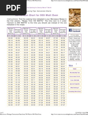Microwave Wattage Conversion Chart From 700 Watt To 900 Watt Oven Pdf Internet World Wide Web